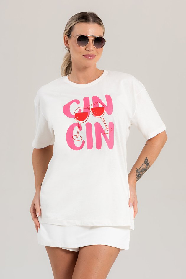 Camiseta Feminina Over Off White – Cin Cin
