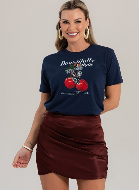 Camiseta Feminina Azul Marinho – Cherry Bow-tifully Unique