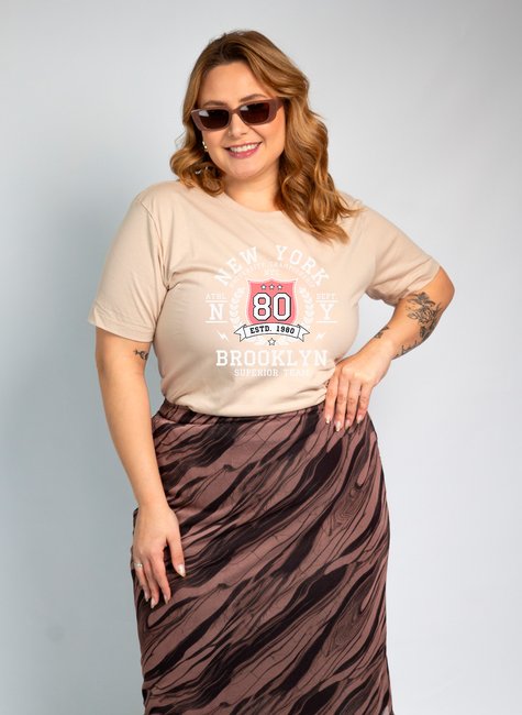 Com estampa central destacando o número 80 e referências ao universo esportivo de New York e Brooklyn, é perfeita para quem ama looks casuais com informação de moda.