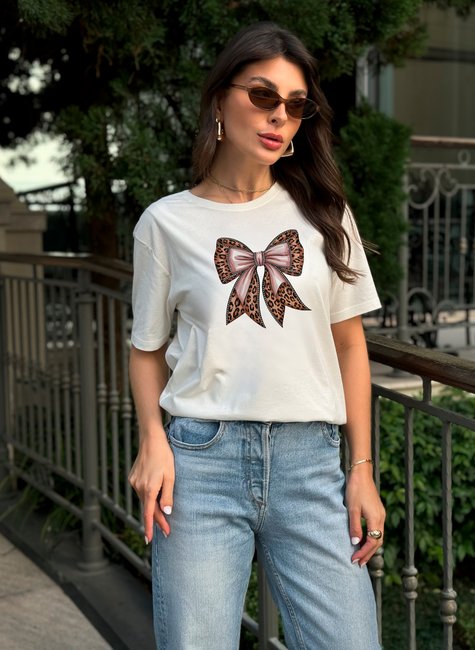 Camiseta Feminina Off White – Estampa Laço Leopard