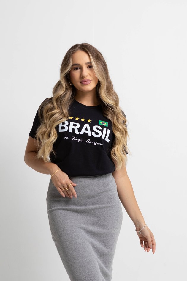 A Camiseta Brasil é perfeita para quem carrega orgulho e identidade em cada detalhe. Com uma estampa marcante trazendo a palavra “BRASIL”, estrelas e a bandeira brasileira, a peça ainda destaca a frase inspiradora “Fé. Força. Coragem.”, representando atitude, esperança e determinação.